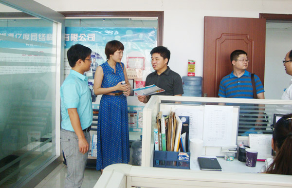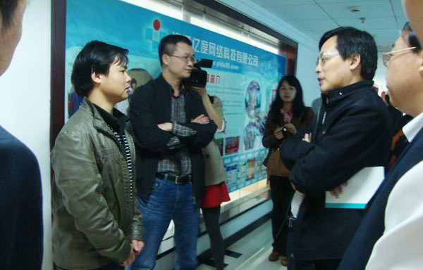 4月13日湖北勞動廳一行在在湘潭市高新區火炬創業中心負責人賀樹峰的陪同下,來湖南(湘潭)大學生科技創業園調研,走進了我司并與我公司大學生法人代表:聶開榜先生進行親切交談,